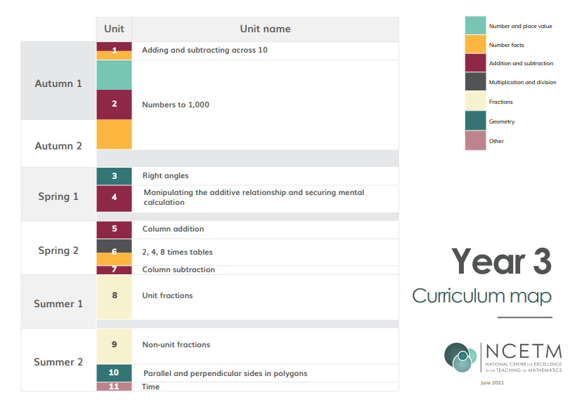 As a school we follow the NCETM curriculum below you will find our long term plan for year 3 showing what areas we will be looking at in each half term.